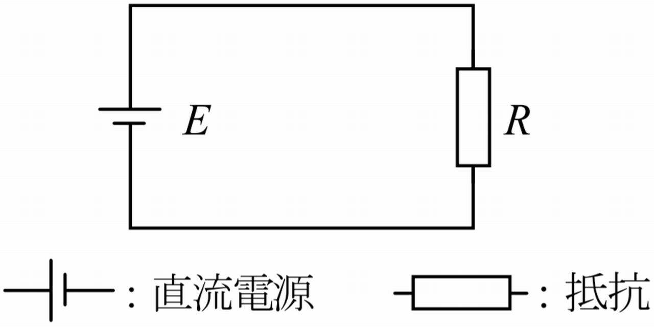 図に示す電気回路において、抵抗 R の値の大きさを 2 倍にすると、この抵抗の消費電力は、何倍になるか。